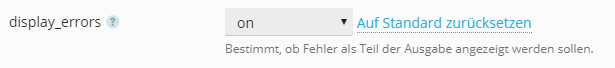 Schalten Sie das PHP-Debugging ein, indem Sie in der gewünschten Domain unter den PHP-Einstellungen den Parameter display_errors den Wert on zuweisen.